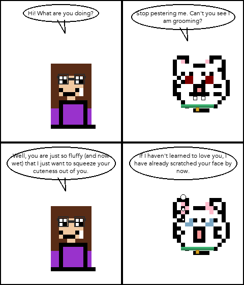 Now, he just flicks his tail. That’s his way of saying: I see you, and I’m choosing to be patient. Sure, his temper eventually goes off if I don’t stop when I should. There’s a point of no return. I always know where it is, and I always cross it anyway. He gets cuter when he’s annoyed, especially with those bunny kicks.